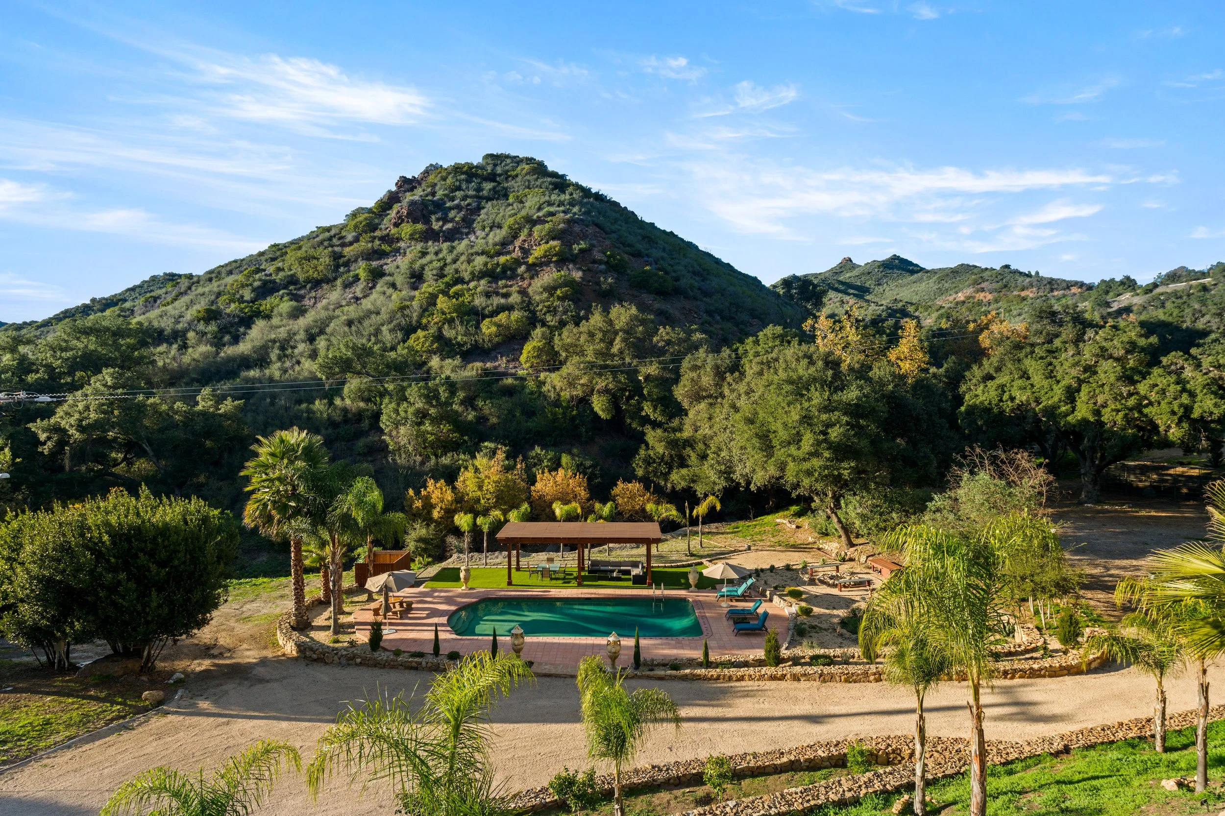 Must see private Malibu estate coming to market for the first time in over 30 years. Situated behind gates in a coveted canyon setting, this extraordinary Spanish style residence offers approximately 4,700 square feet with 4 bedrooms and 4.5 bathrooms, set on an 28 acres of pristine land. A seasonal stream runs through the property, creating a park like environment that feels worlds away yet remains moments from Malibu's most iconic destinations. Recently renovated kitchens and bathrooms blend timeless architecture with modern comfort, while the home's thoughtful layout is ideal for both intimate living and larger scale entertaining. Expansive outdoor areas provide endless opportunities for customization, whether envisioned as a private equestrian estate, wellness retreat, vineyard, or a spectacular event or venue property. Formerly a horse property, the land offers ample room for stables, riding trails, subject to approvals. The setting delivers unparalleled privacy, natural beauty, and flexibility, all while being ideally located right near Calamigos Ranch Resort and Spa, Point Dume, and Zuma Beach. This is a rare opportunity to own a generational Malibu property where acreage, seclusion, and proximity to the coast converge in one remarkable offering.